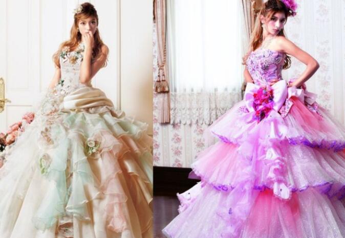 裹胸樣式,超大型衣擺,上邊點(diǎn)綴著花瓣花紋或雪紡線絲,唯美意境又夢(mèng)幻2,能GET全部的少女心爆棚。