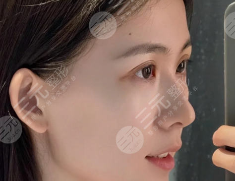 √1個(gè)月后:植入的耳軟骨組織與鼻部組織相融合,硅膠假體的位置準(zhǔn)確看上去不會(huì)很假。