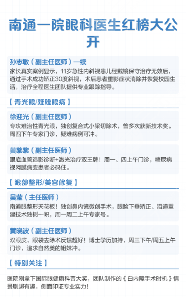 一、先劃重點(diǎn):南通一院眼科核心專家檔案表(2025最新)