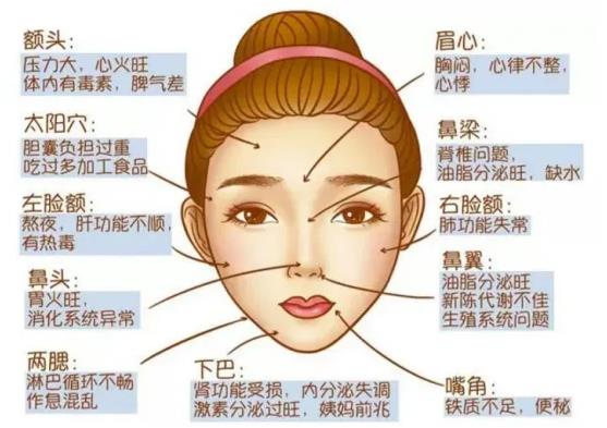 一、臉上長痘痘的位置提示什么?該如何處理?