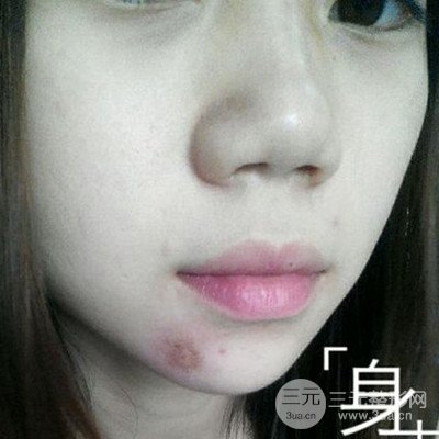 今天不小心洗臉的時(shí)候把痂碰掉了,好像是新長(zhǎng)出來(lái)的皮膚,希望能好得和周圍的皮膚一樣啊。