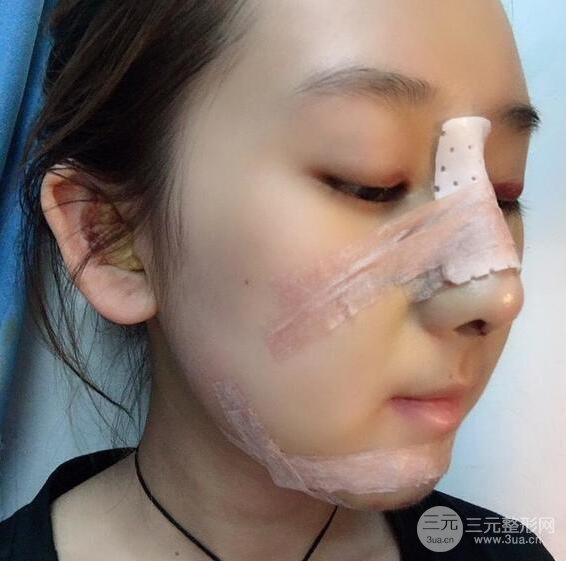 術(shù)后一天,醒來(lái)感覺(jué)自己腫成豬頭了,鼻子塞了海綿感覺(jué)影響呼吸,挺不舒服的,但是不怎么疼